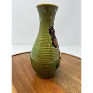 Grace this beautiful green ceramic vase with a delicate butterfly and blooming flower, bringing a touch of nature's charm to any tabletop. The textured horizontal lines encircling the body add a subtle visual interest, while the raised butterfly and flower motif creates a captivating focal point. Tiny, scattered orange dots on the neck of the vase provide a playful and whimsical accent.
