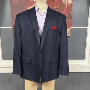 Michael Kors Blazer Jacket Sport Coat Men 50R Polyester Blend Stretch Navy/Brown