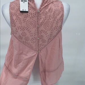 Abercrombie & Fitch Top Womens Sz S Pink Sleeveless Eyelet Shell Embroidered