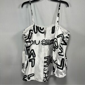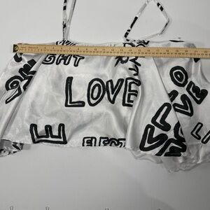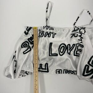 Graffiti Print Truth NYC White Black Satin Cami Crop Top XL
