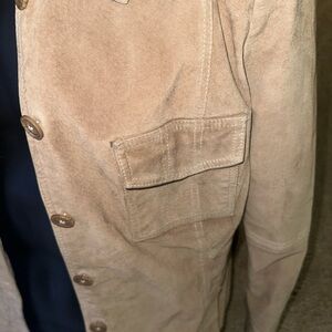 Women’s used size XL Mossimo beige leather jacket button front Pre own items are as is any defects or errors of the item , the price has been modified to reflect. Photos with flash.