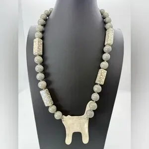#artisanjewelry #ceramicnecklace #catnecklace #handmadejewelry #folkart #studiopottery #bohostyle #statementnecklace #oneofakindjewelry #crazycatladyjewelry #greycatnecklace