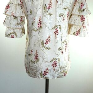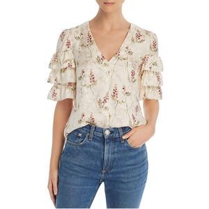 Rebecca Taylor Ivie Silk Blend Ruffle Sleeve Floral Blouse Size 0