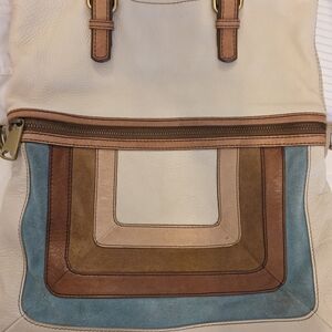 Fossil Explorer Ivory Zippered Leather Bag With Crossbody Strap