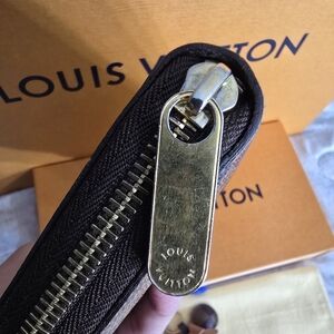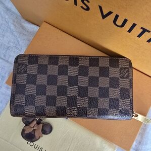 This is a preowned Authentic Louis Vuitton DE zippy wallet in very good condition.