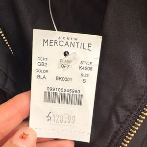 Chic black puffer jacket with gold accents. Ideal for cold weather. Stylish and warm.