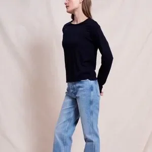 🆕 SUNDRY Long-sleeved crewneck sweater crop top in deep navy size XS NWT