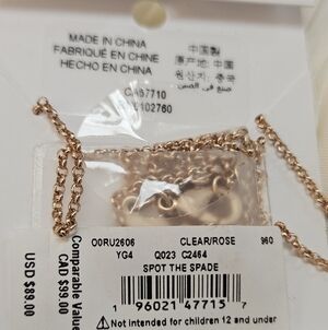 NWT Kate Spade Rose Gold 'Spot The Spade' Necklace with Crystal Accents