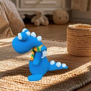 Travel back in time to the era when magnificent dinosaurs roamed the Earth, but now, with a comforting and snuggly twist! Our captivating handcrafted crocheted dinosaur is a true work of artistry and affection, patiently waiting to become the cherished companion of your little one. Our crocheted dinosaur is truly one of a kind. Carefully conceptualized and expertly crafted, it boasts a vibrant array of colors and intricate details that breathe life into its form. From the textured scales to its expressive eyes, this dinosaur exudes character and charm.