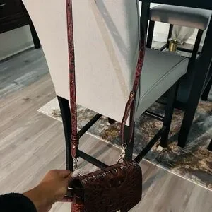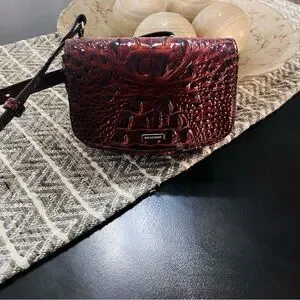 Chic Brahmin crossbody with croc-embossed texture. Rich brown/burgundy hue. Perfect for stylish outings. No scratches or stains. Barely used. Adjustable strap.
