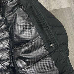 Columbia jacket with quilted design. Features hood and front zipper.and zipper pockets.