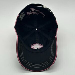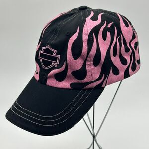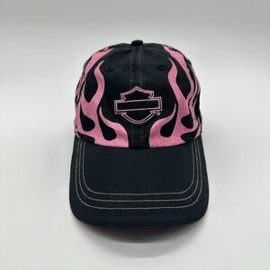 Y2K Pink Flame Harley Davidson Black Baseball Cap Hat Women's Glitter Adjustable