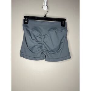 Flattering high-waisted workout shorts in a sleek slate blue/gray tone. These feature a scrunch butt seam for a lifted look, a wide waistband for support, and a smooth, stretchy fabric that’s perfect for gym days, Pilates, yoga, or athleisure wear.