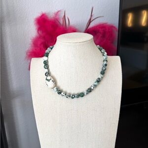 Artisan Moss Agate and Porcelain Beaded Necklace