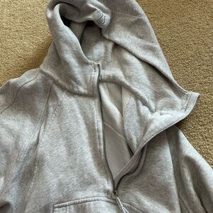 Cozy gray hoodie with front pocket. Half-zip design. Perfect for casual wear.