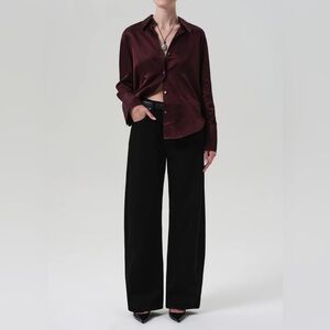 The ‘Ayla’ jean offers a refined take on the baggy silhouette with a relaxed fit that sits away from the body while maintaining a clean, intentional shape. The ‘Solid Black’ wash is a deep, true black with a crisp, polished finish.