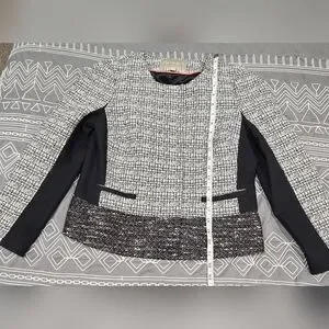 Banana Republic Tweed Black White And Cream Blazer Size 8