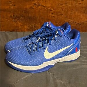 Stylish blue athletic shoes with white accents. Comfortable and durable design. Perfect for sports and casual wear. Worn a few times for practice but never been used heavily not wide enough for my feet comes with box and original tissue