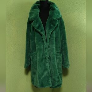 Vine and Valley plush knee length coat with hidden front snap closure.