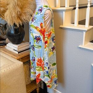 Fun and vibrant vintage Jams World dress featuring a tropical Hawaii-inspired print in multicolored tones. Designed with a relaxed fit, half-button front, and lightweight breathable fabric—perfect for beach days, casual outings, or summer vacations. A cheerful and timeless tropical classic.