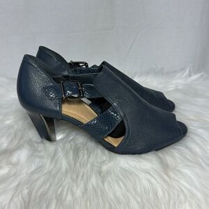 Nurture By Lamaze Navy Leather Peep Toe Heels Sz 8.5