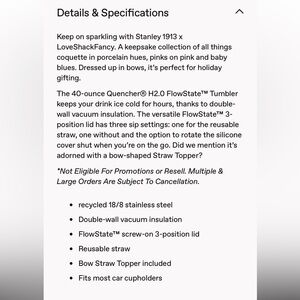 Stanley 1913 x LoveShackFancy Holiday Quencher® H2.0 FlowState™ Tumbler | 40 OZ