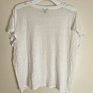 Ann Taylor 100% Linen White Lace Crochet Accent Tee size medium