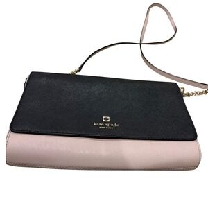Kate Spade New York Leather Flap Crossbody Bag Black Pink Chain Strap
