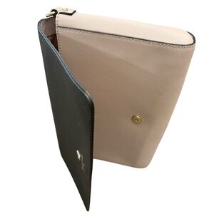 Kate Spade New York leather flap crossbody bag in a sophisticated colorblock design featuring black and blush pink.