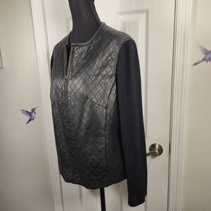 Jaclyn Smith Black Quilted Leather Mixed Media Cardigan Jacket L Classic Outwear