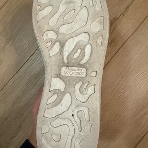 Stylish white sneakers featuring a glitter detail for a touch of sparkle. Perfect for casual outings. Alexander McQueen White & Silver Glitter Oversized Sneakers,still in very good condition,size 39 women