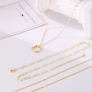 Layering Necklace Set Gold Plated Brass Chains Trendy Minimal Chic