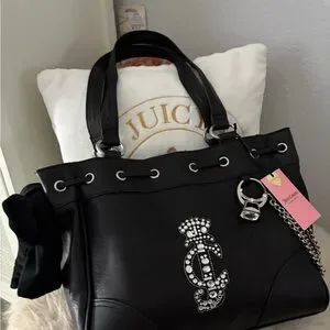 Juicy couture,Y2K, classic tote, black handbag featuring elegant silver & bling bling ๐ accents. Perfect for any occasion! ๐ฅ๐ฅ๐ฅ๐ฅ