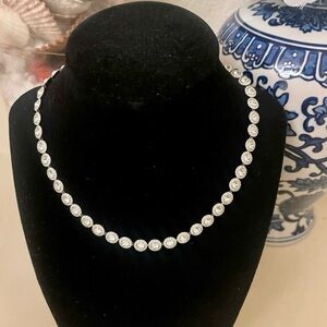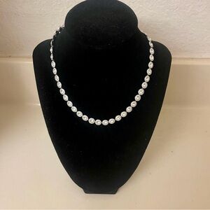 Make every day shine brighter with this luminous Una Tennis necklace. Longer than the standard Una Angelic Tennis necklace, the ruthenium plated design features individual links, each set with a brilliant central crystal and a halo of smaller round-cut crystals. A spectacular style that can be paired with matching pieces from the same family.