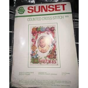 VTG SUNSET Counted Cross Stitch Kit Baby Christmas 5x7 Frame Multi-color Unopened DIY Crafting