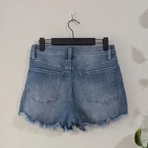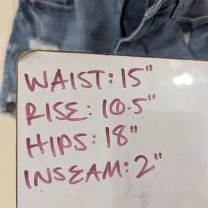 stretchy jean shirts with factory distressing. high wiasted. no flaws, please see pics for measurements.