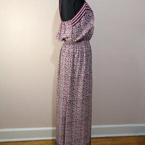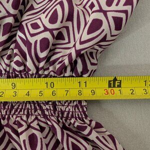 This Vintage Style Boho Purple Geometric Print Long Maxi Dress is perfect for summer festivals and casual occasions. The dress features a sleeveless design with a V-neck and a pullover closure, made of rayon fabric in a vibrant purple color. The strappy sleeve adds a stylish touch, while the bohemian theme and geometric pattern give it a unique and retro vibe. Machine washable and in a size medium, this dress from LOFT is a versatile and comfortable choice for the warmer seasons.