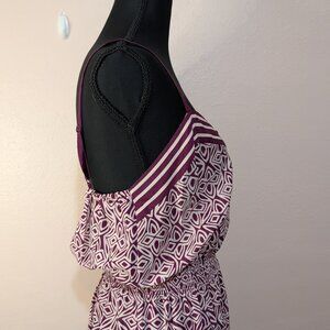 Keywords: Bohemian, Boho, Maxi Dress, Summer Dress, Purple, Plum, Lavender, Geometric Print, Floral, Ethnic Pattern, Smocked Waist, Elastic Waist, Spaghetti Strap, Sleeveless, V-Neck, Border Print, Long Dress, Sundress, Vacation, Beach, Festival, Casual, Lightweight, Flowy, Peasant Style, Vintage Inspired, Hippie, Romantic, Summer Fashion.