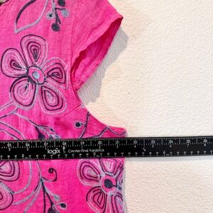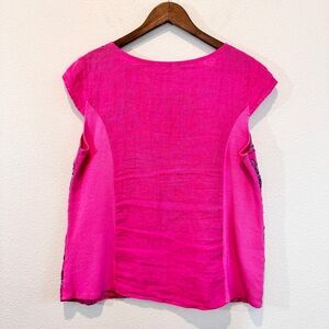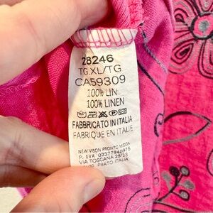 Italian linen embroidered floral tunic top women XL hot pink fuchsia boho cottagecore resort summer made in Italy artisan blouse breathable linen