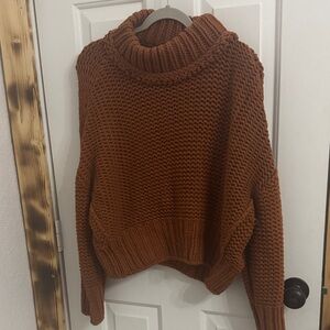 Free People Textured Mock Neck Sweater - Rust Brown