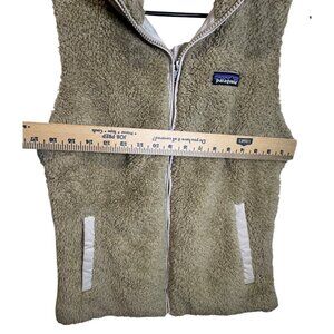 Cozy Patagonia vest in tan Los Gatos sherpa fleece offers warmth and style. Perfect for outdoor adventures or casual wear.