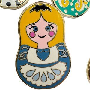 This collectible Disney pin set features nesting doll designs of beloved princesses. A must-have for fans of unique Disney memorabilia.