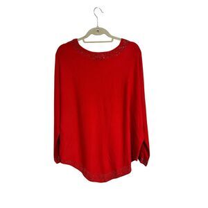 Oliver Women's L Red Rhinestone Embellished Soft Knit Pullover Sweater