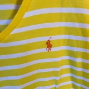 Classic and preppy, this Ralph Lauren short sleeve tee features bold yellow and white rugby-style stripes with a signature embroidered logo on the chest. Made from 100% cotton for a soft and breathable feel—perfect for casual wear, layering, or a timeless sporty look.