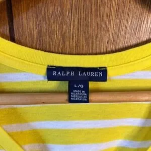 Ralph Lauren Womens T Shirt Large Yellow White Striped V Neck Pony Logo