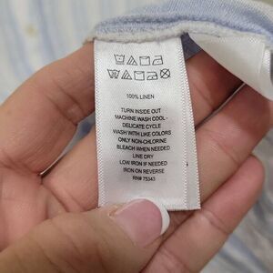 Sigrid Olsen 100% Linen Shirt 1X Blue White Stripe Button Up Oversized Slouchy