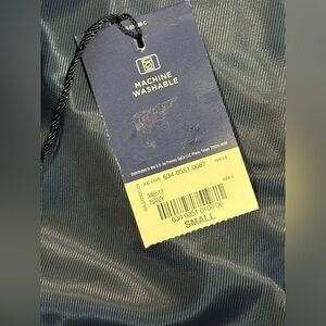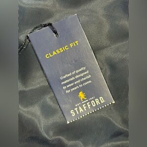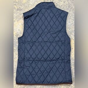 Stafford Mens Small Quilted Classic Fit Navy Vest W/Brown Trim Full Zip - NWT