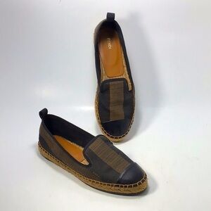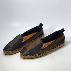 Fendi Pequin Stripe Canvas Espadrilles - Brown & Black Size 36, 6 US
