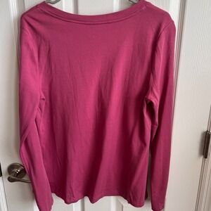 Keywords: long sleeve shirt, v neck top, pink shirt, casual top, womens t-shirt, isaac mizrahi, essentials, long sleeve tee, basic tee, comfortable top, cotton shirt, medium size, womens clothing