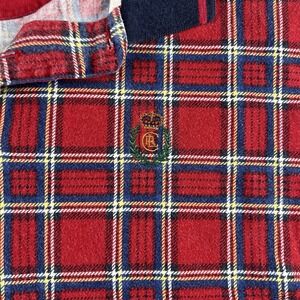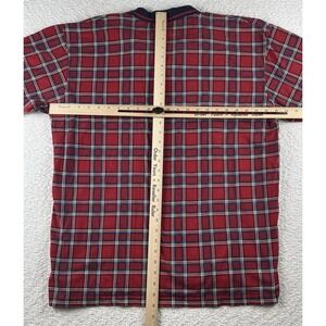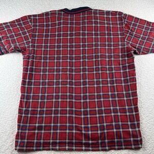 The Chaps Ralph Lauren Men's XL Multicolor Short Sleeve Polo is a classic and preppy shirt with a check pattern, collared neckline, and button closure. Made from 100% cotton, this breathable polo featuring a spread collar and logo accents is perfect for all seasons and can be worn with ease. With its regular fit and XL size, this polo is a great choice for any man looking to add a touch of 90s style to their wardrobe.